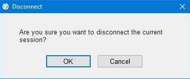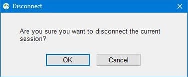 To close the session, simply click on the "X" in the upper-right corner of the application to bring up the following message.
